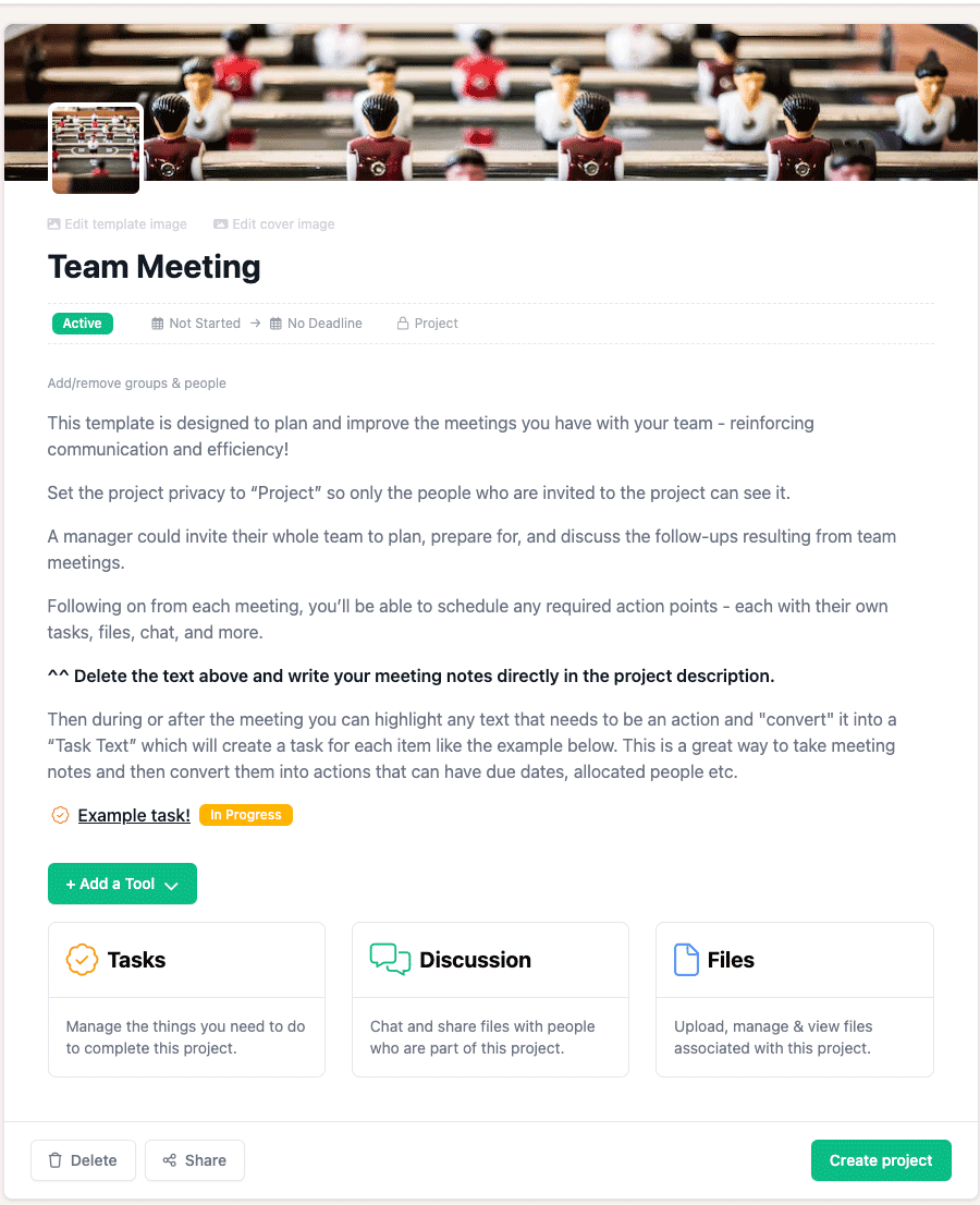 A manager could invite their whole team to plan, prepare for, and discuss the follow-ups resulting from team meetings.