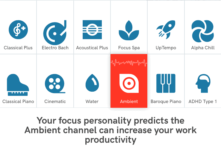 Users simply take a focus quiz to find out which music helps them concentrate and work faster. From there, they’re given their ideal focus track: