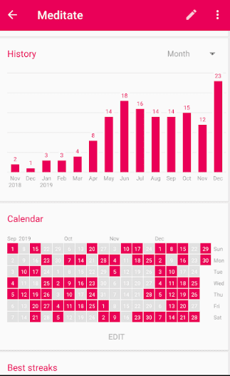Detailed charts allow you to see how your habits have improved over time, giving you the motivation to go on and achieve your long-term goals!