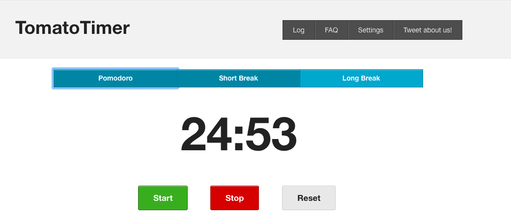 TomatoTimer is an app that makes the pomodoro technique easily accessible. You just hit the start button and the time begins ticking away: