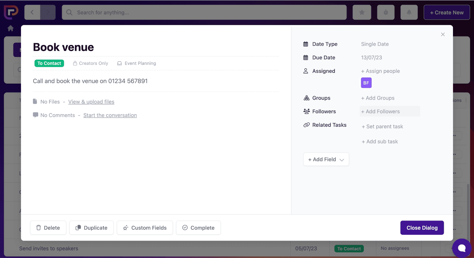 At Project.co, we have a free to-do list template to help users get started. With our tasks functionality you can add as many items to your to-do list as you want, while also assigning each task a due date, a person, and any notes or attachments that may help.