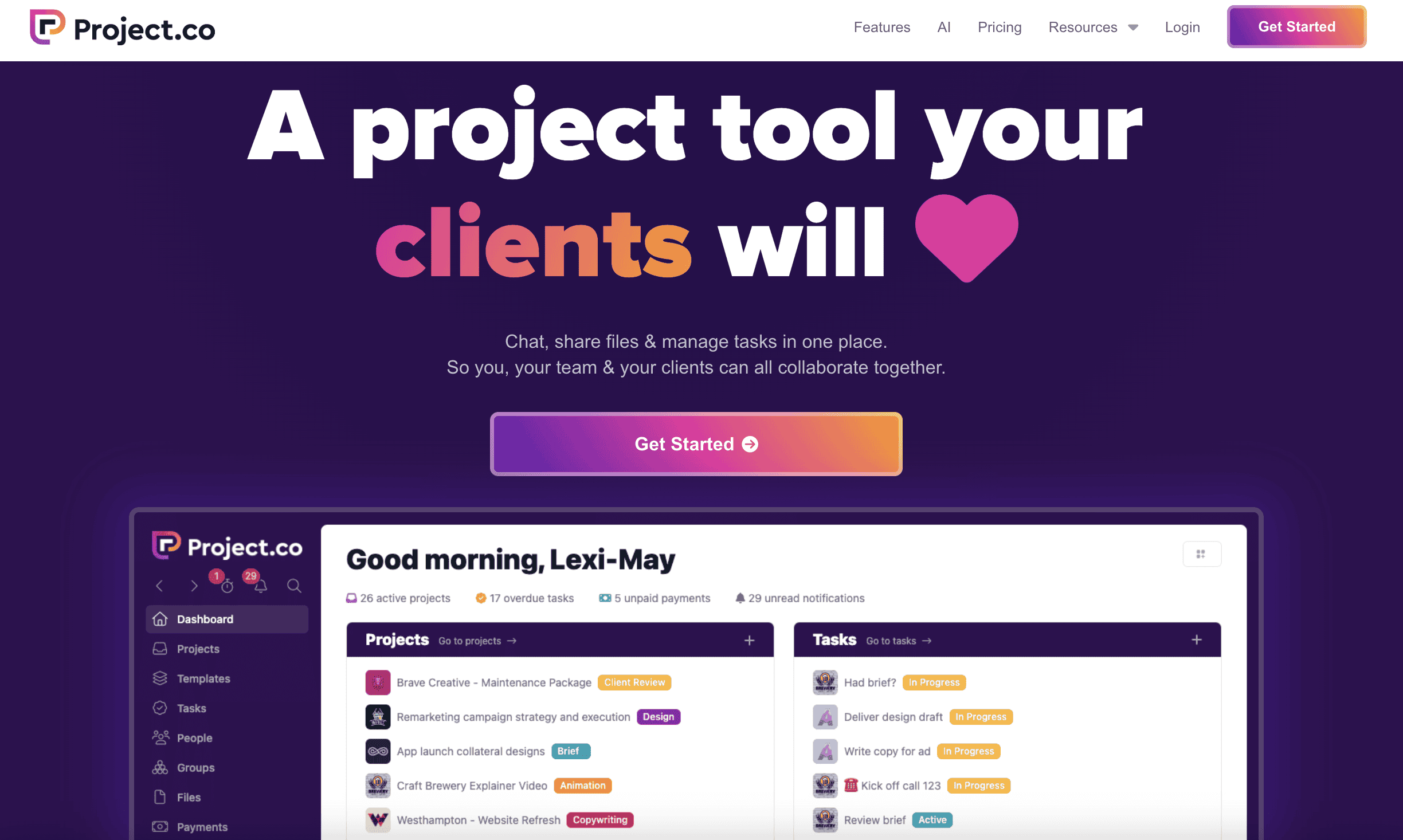 If you’re looking for an all encompassing project management platform that you can adjust to suit the specific needs of your team, check out Project.co.