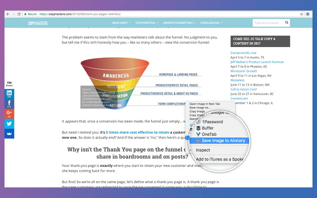 It’s essentially a place to store interesting articles, images and content for future use. Simply highlight text in your browser (or right click an image) and select ‘Save to Airstory.’