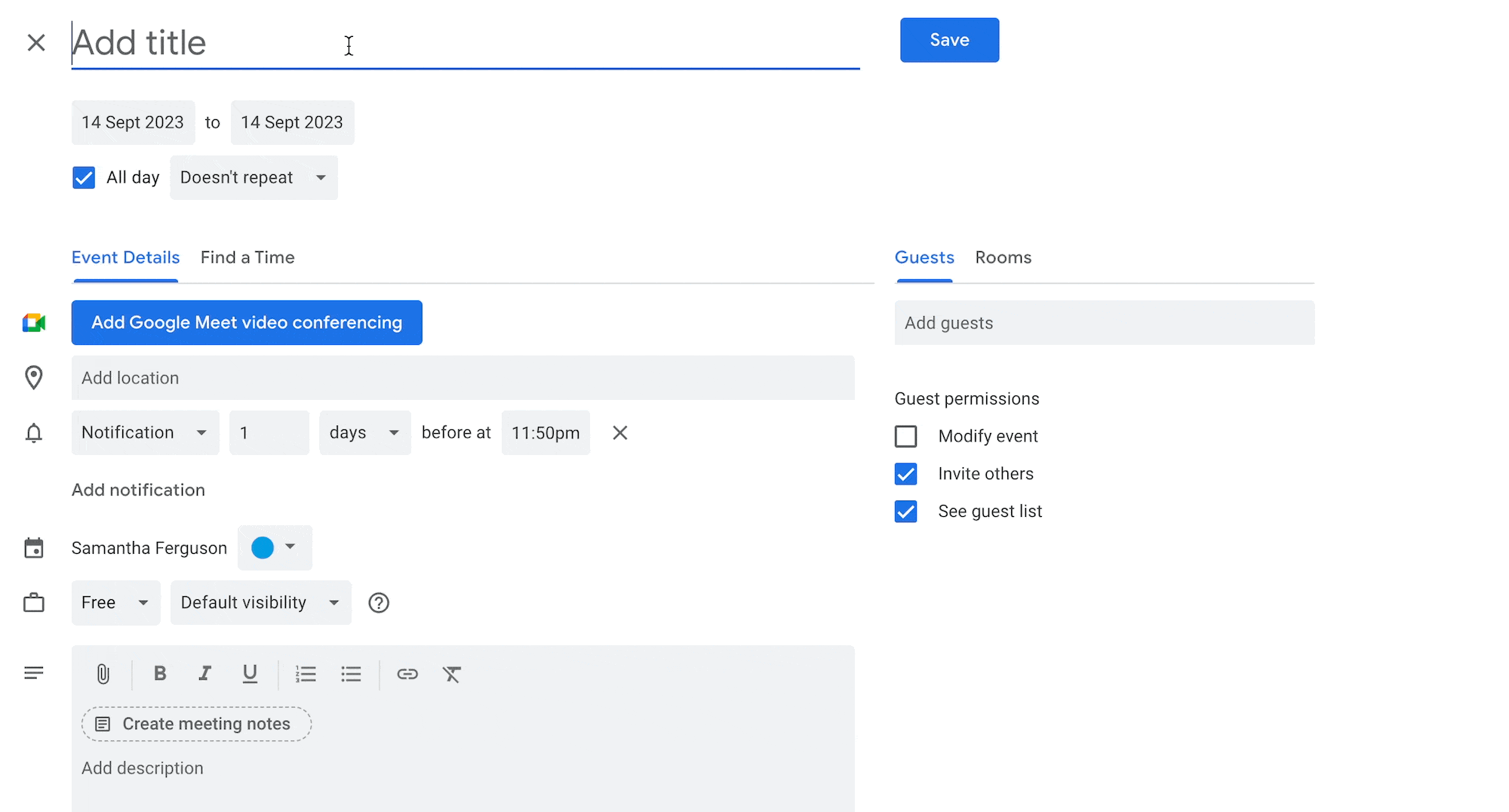 You can book a recurring Google Meet event with Google calendar. All you need to do is double-click on any date and follow these steps: