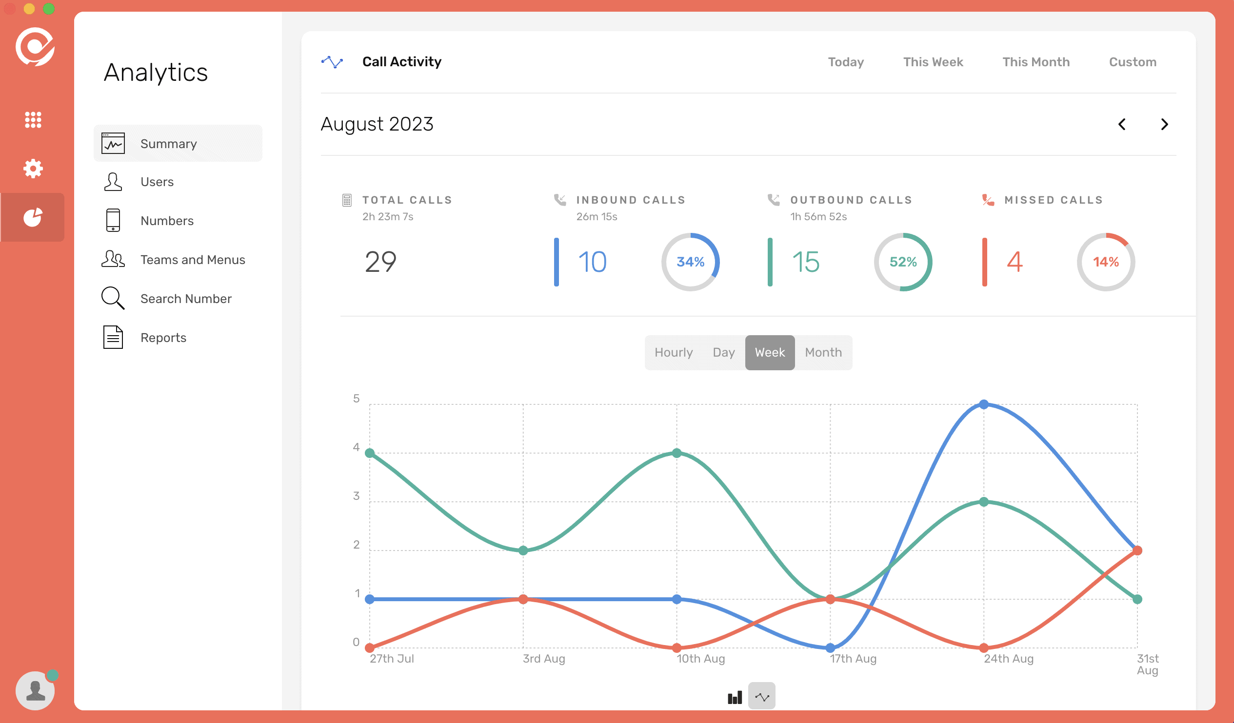 There’s also an analytics dashboard that gives you great insights into your call activity.