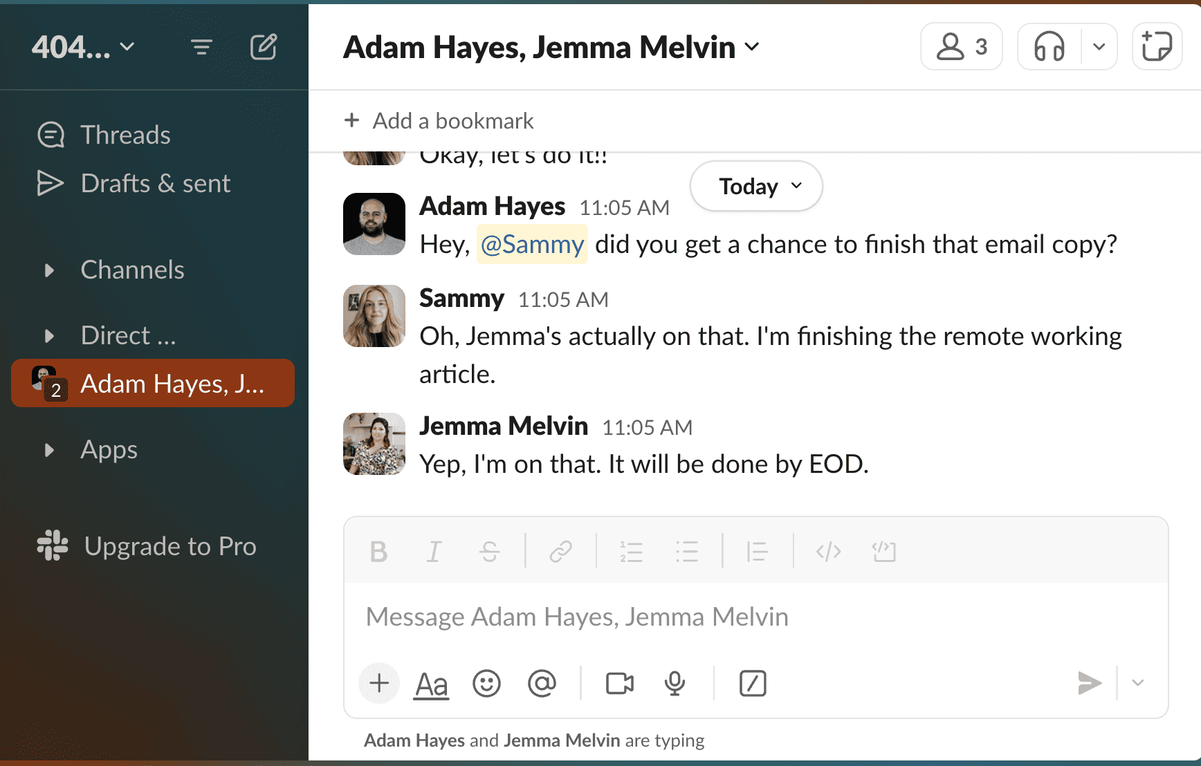Whenever you receive a message from a team member, you’ll be notified instantly. And you can even see team members typing in real time.
