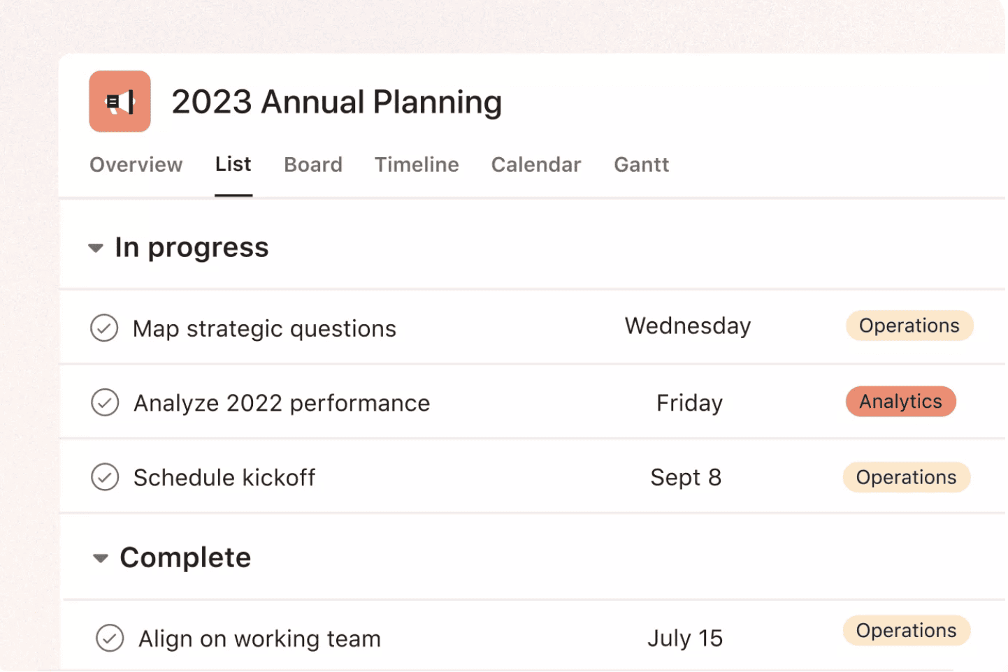 Asana is a work management platform that brings project management tools together so teams can organise, track, and manage their work in one place.