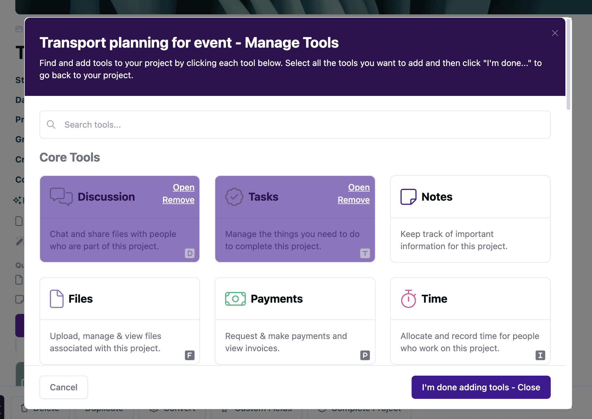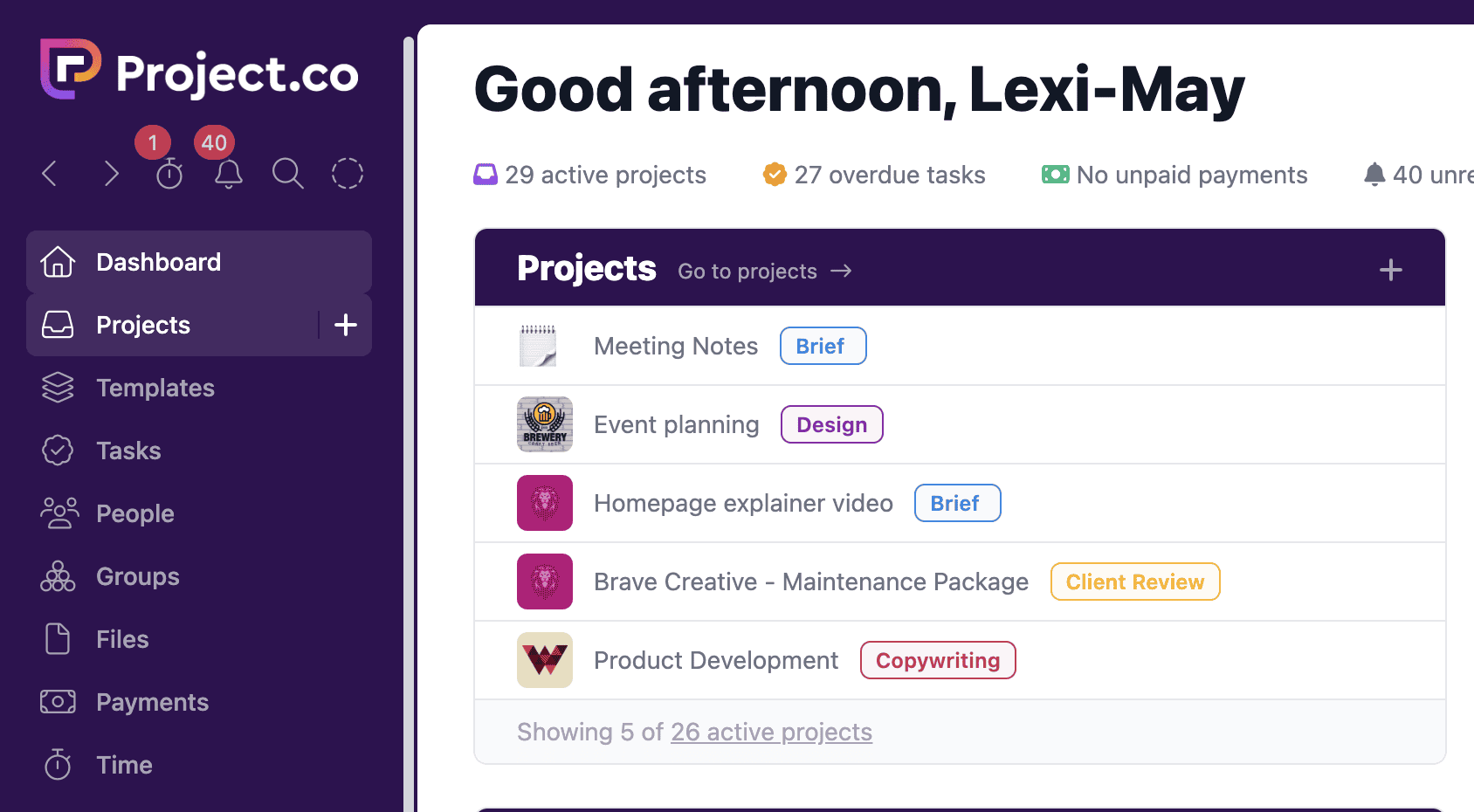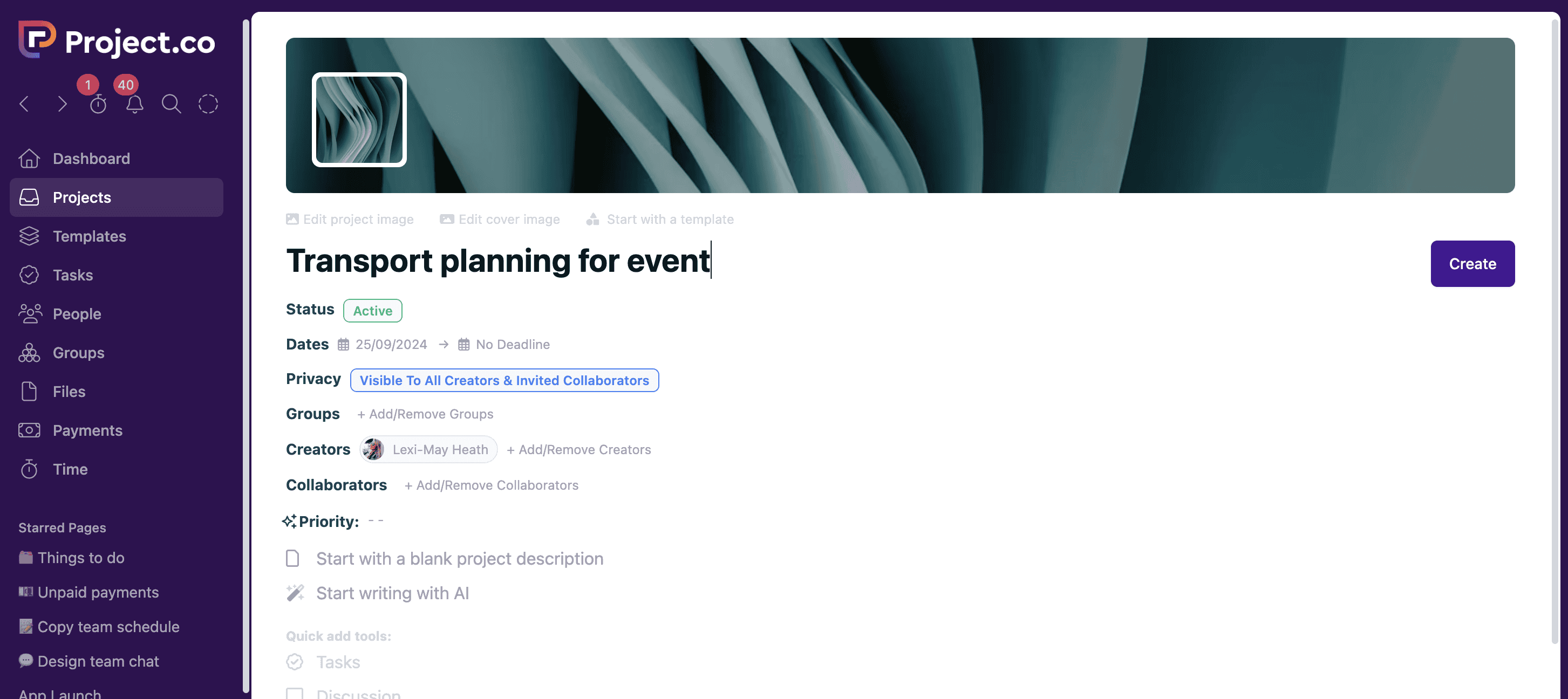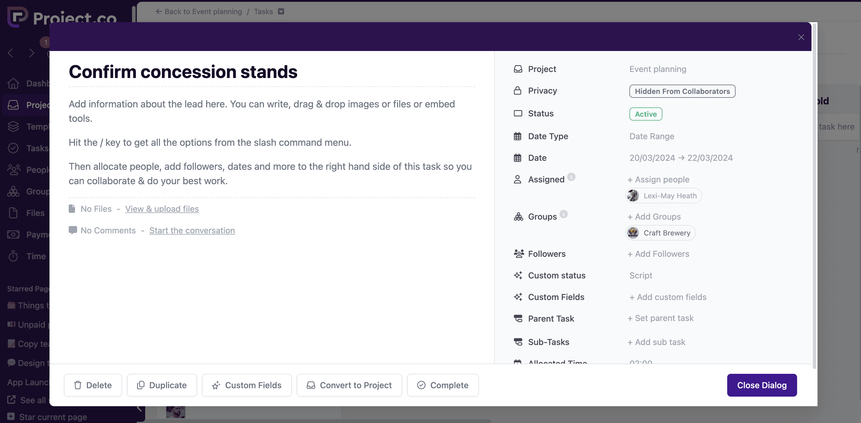 As you can open an unlimited number of projects within Project.co, you can manage each logistical aspect individually. And even allocate different things to different people so that you don’t become overwhelmed by all of the plates you need to spin.