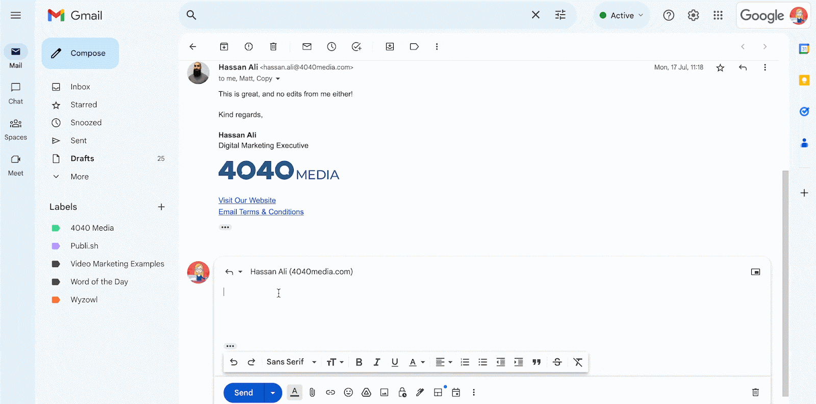 Another useful tool in Gmail (and most other email service providers) is smart suggestions. This feature uses AI to provide automated suggestions to you when you’re composing emails.