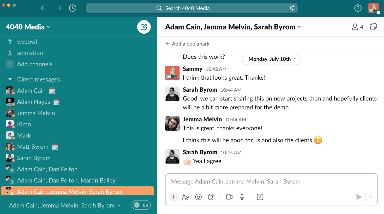 You can have group chats, use emojis, add attachments. It’s got all of the benefits of email without the clutter of an inbox!