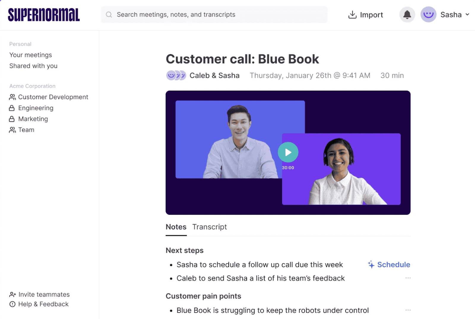 Another AI tool that can eliminate the need for emails altogether (in some cases) is Supernormal. Supernormal is an AI meeting notes tool that works seamlessly with Zoom, Teams, and Google Meet.