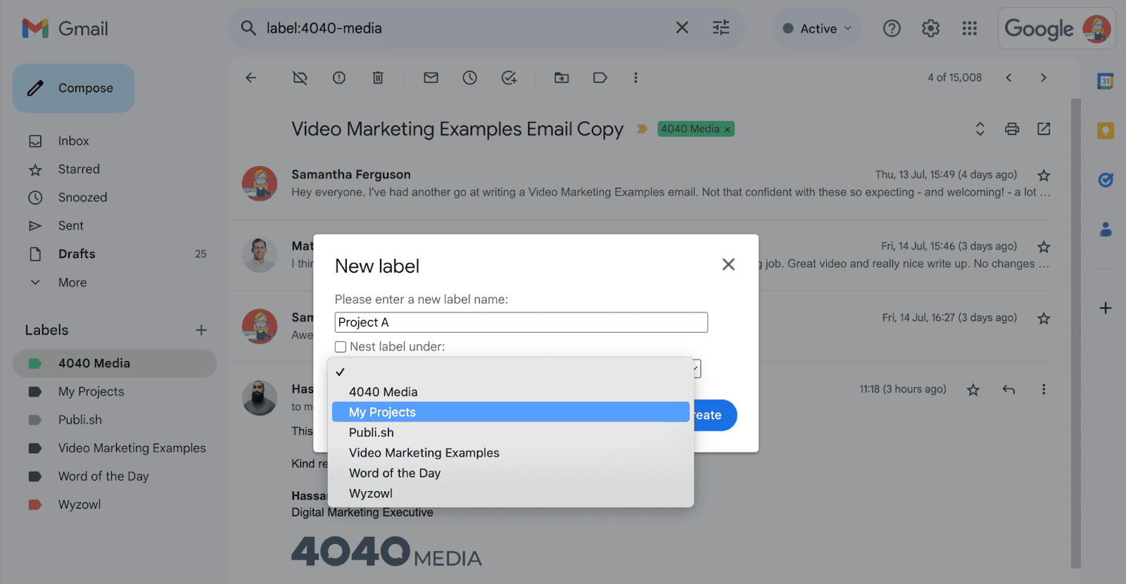 If you’re using Gmail, you can quickly and easily create labels to organise your inbox: